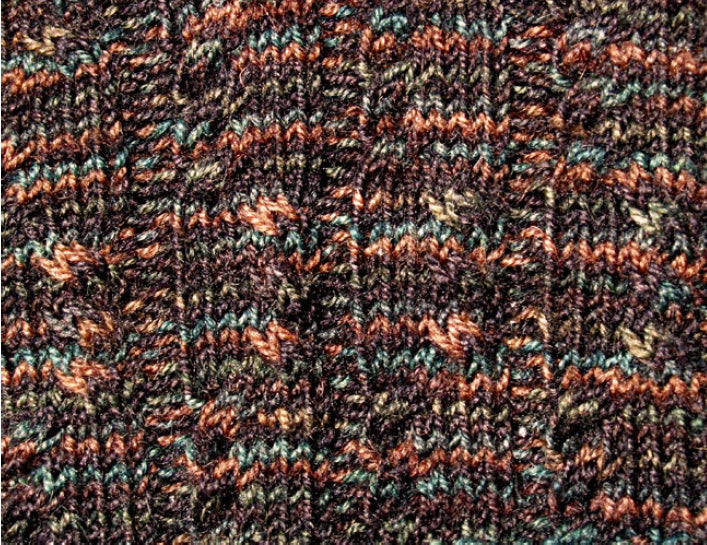 MATERIALS: One skein sock-weight yarn (Flying Sock yarn, 100% BlueFace Leicester, Color: Woodland, used in example)