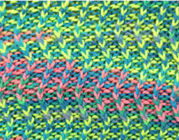 MATERIALS: 100 gms (ca. 425 m) fingering-weight yarn (Lace Wing Sock yarn, Color: Paas, used in example)