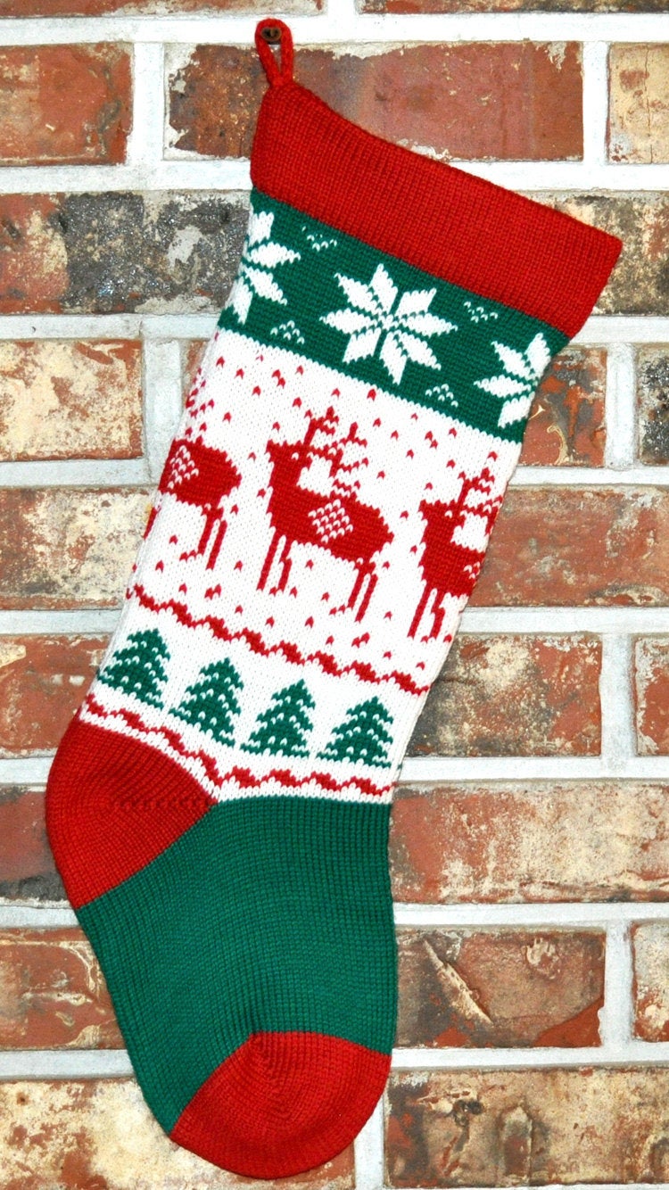 Handmade Knit Christmas Reindeer Christmas Stocking