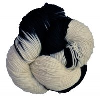 Black & White's skein is one-half pure black, while the other half has been left white. Now you can make a project that looks just like a Holstein cow or a plains zebra!
